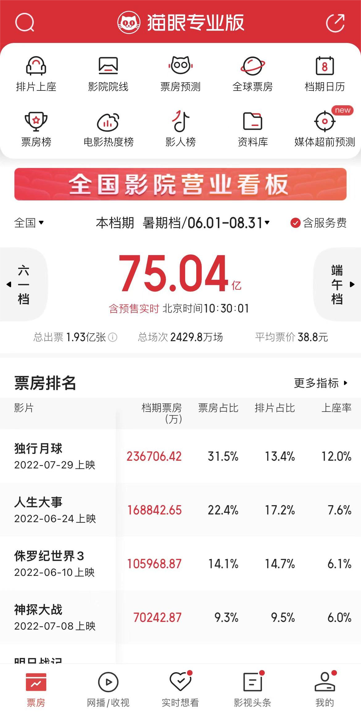 破75億!2022年暑期檔總票房已超過(guò)去年暑期檔