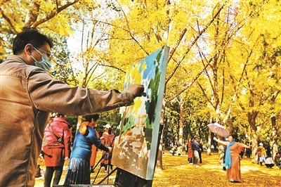 藝術(shù)家進(jìn)園林,“落葉拼金秋”,在參觀完地壇公園內(nèi)標(biāo)志性的點(diǎn)位后,藝術(shù)家們帶著自己的作畫工具,選取心儀的一角,用畫筆勾勒心中最美地壇。園內(nèi),還有群眾自發(fā)的樂隊、舞蹈團(tuán)等藝術(shù)團(tuán)體及攝影愛好者,用自己獨(dú)特的方式“記錄”地壇秋景,讓古老地壇充分沾染“文藝范兒”。