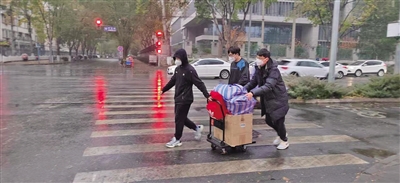 學(xué)校進(jìn)入臨時(shí)管控狀態(tài),但很多學(xué)生人在住宿區(qū)、學(xué)習(xí)物品在北校園的學(xué)習(xí)區(qū),怎么辦?該校通過接訴即辦平臺(tái)收到學(xué)生的反映后,立即作出決策,成立物品傳遞轉(zhuǎn)運(yùn)隊(duì)伍,幫助學(xué)生解決人與學(xué)習(xí)物品分離的問題,學(xué)院書記、院長(zhǎng)和師生志愿者立即行動(dòng)起來(lái)組建搬運(yùn)隊(duì)伍,有的在校內(nèi)幫忙打包學(xué)生物資,有的在校外接應(yīng)、及時(shí)將學(xué)生所需物資送到學(xué)生手里。
