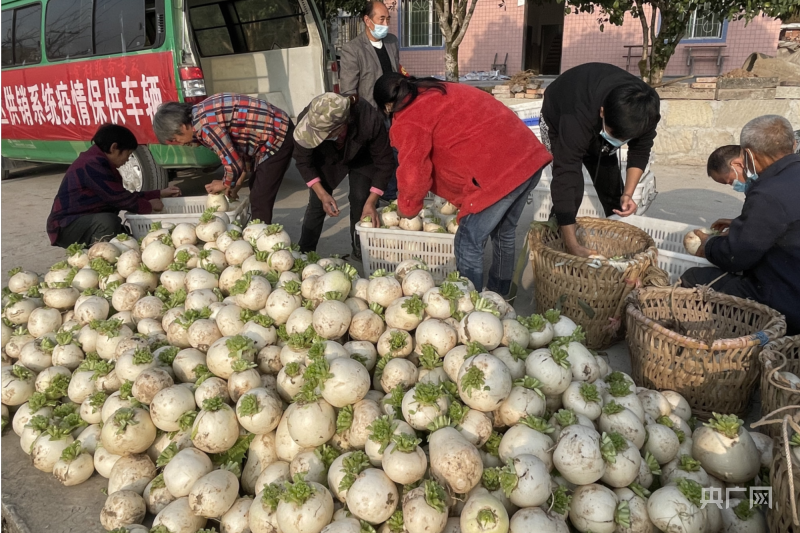 接下來(lái),一品供銷社通過(guò)與農(nóng)禾電商公司取得聯(lián)系,很快就為包括趙先華在內(nèi)的7戶村民近4000斤的蘿卜找到了銷售渠道。當(dāng)掛著供銷系統(tǒng)疫情保供橫幅的車輛出現(xiàn)在趙先華面前時(shí),他緊鎖的眉頭終于舒展開(kāi)來(lái),露出了微笑。