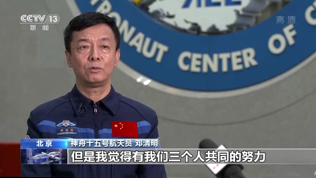 神舟十五號航天員 鄧清明:壓力是肯定有,但是我覺得有我們三個人共同的努力,有天地之間大協作,有地面的支持,這種壓力不算什么。我還是喜歡干有挑戰(zhàn)性的活,人生因奮斗而精彩,講的就是這個意思。