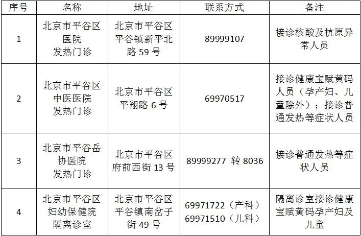 關(guān)于調(diào)整平谷區(qū)發(fā)熱門診職能的公告