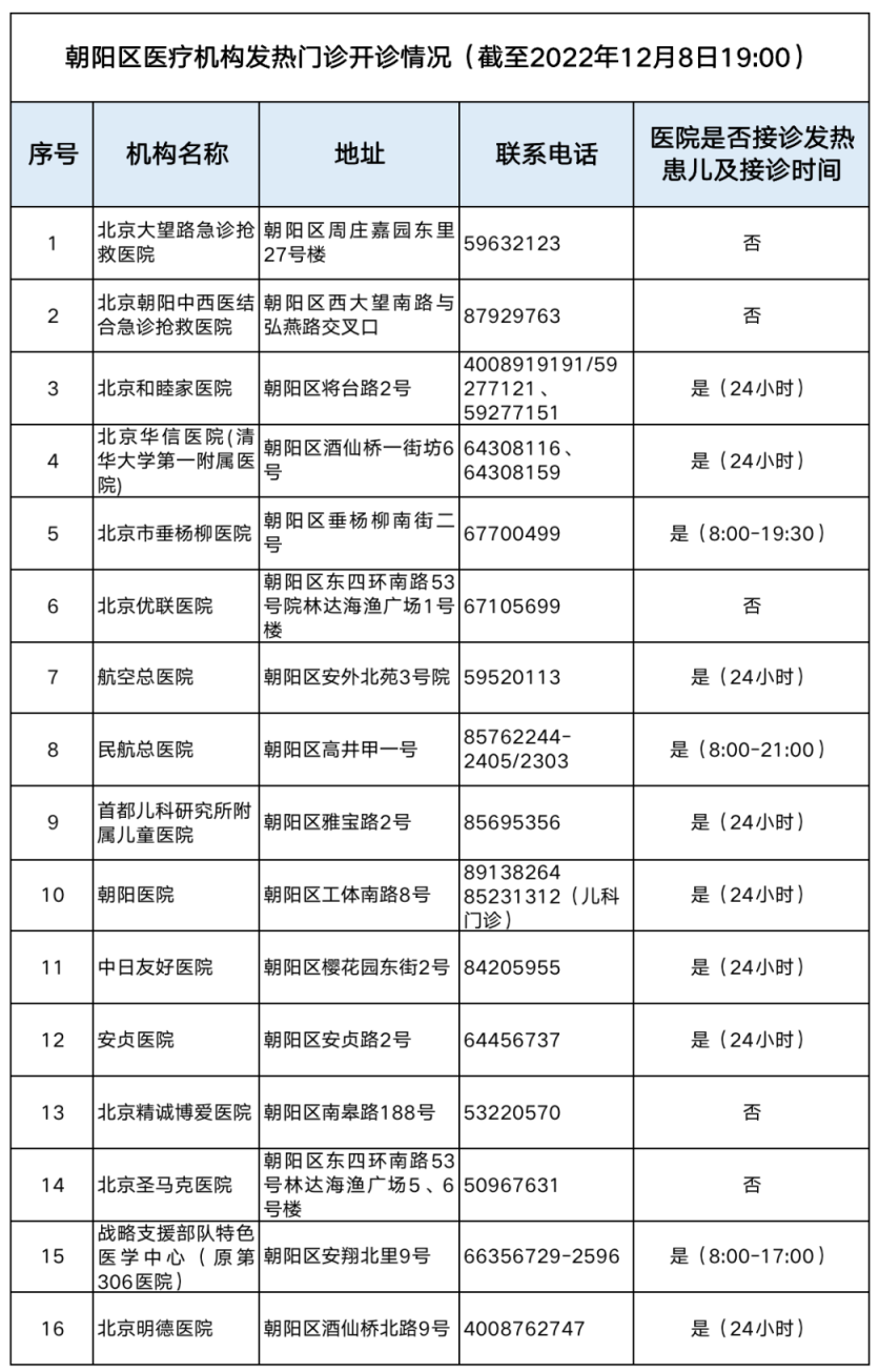 朝陽(yáng)區(qū)16家發(fā)熱門(mén)診醫(yī)療機(jī)構(gòu)信息