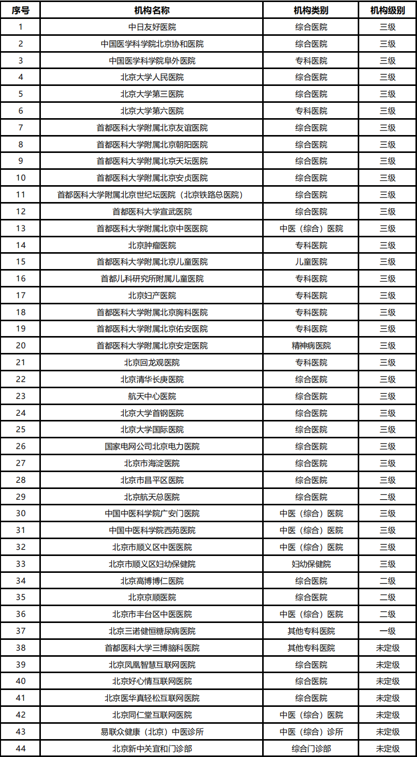 北京市公布互聯(lián)網(wǎng)醫(yī)院、開展互聯(lián)網(wǎng)診療服務醫(yī)療機構名單