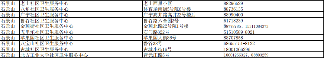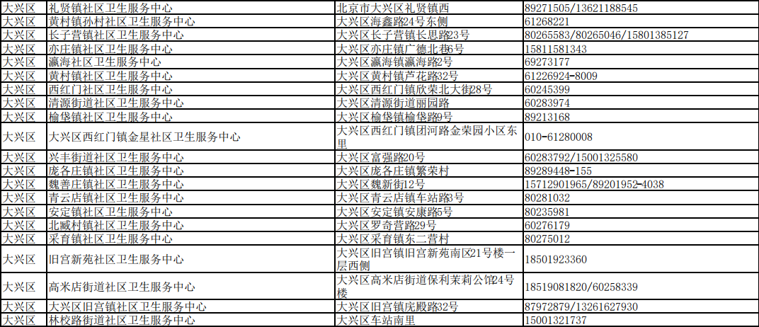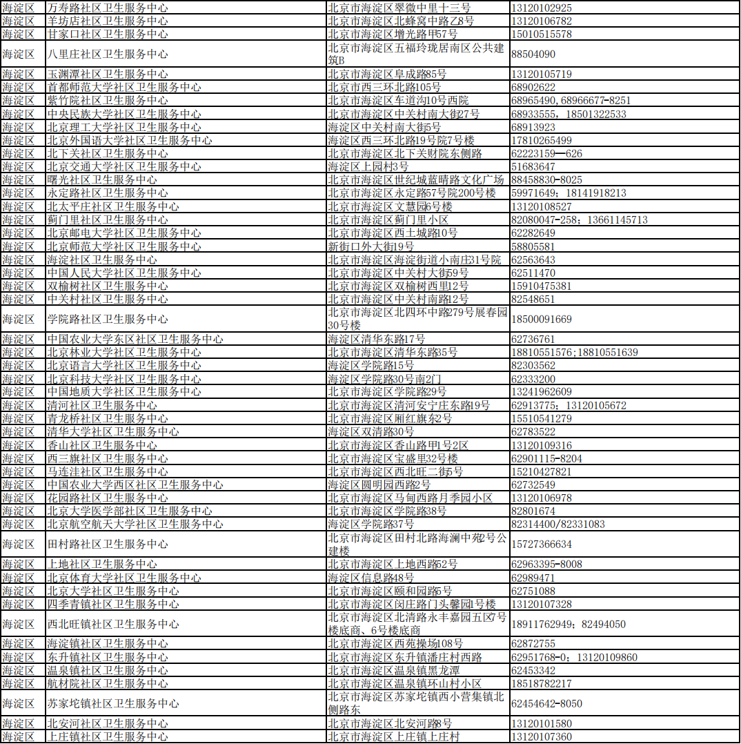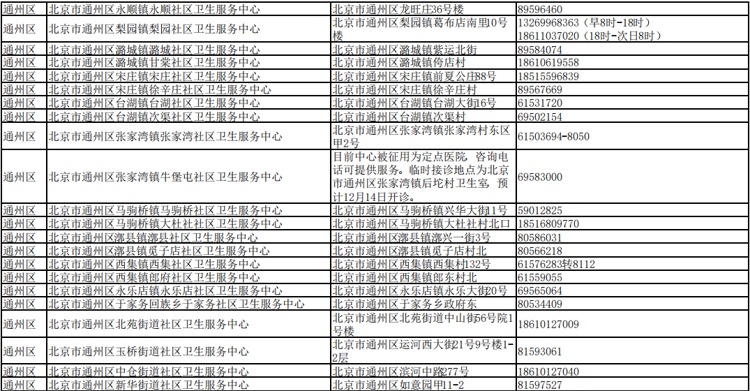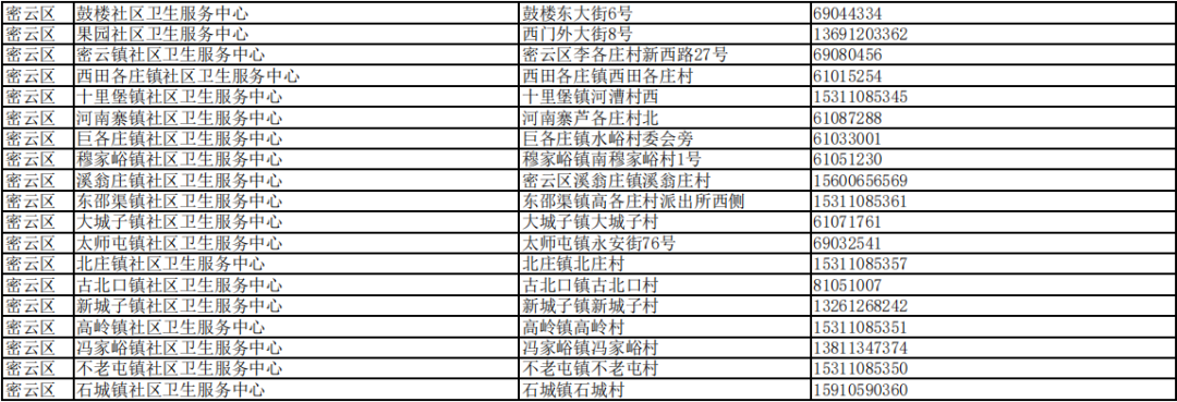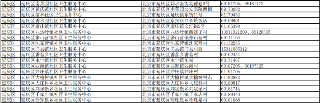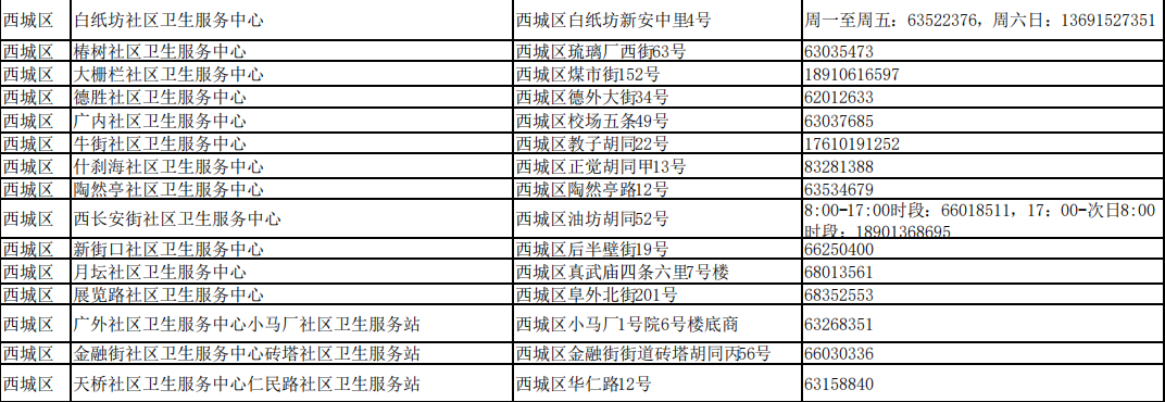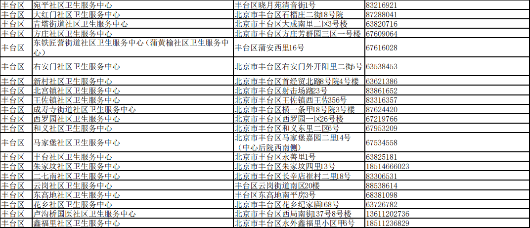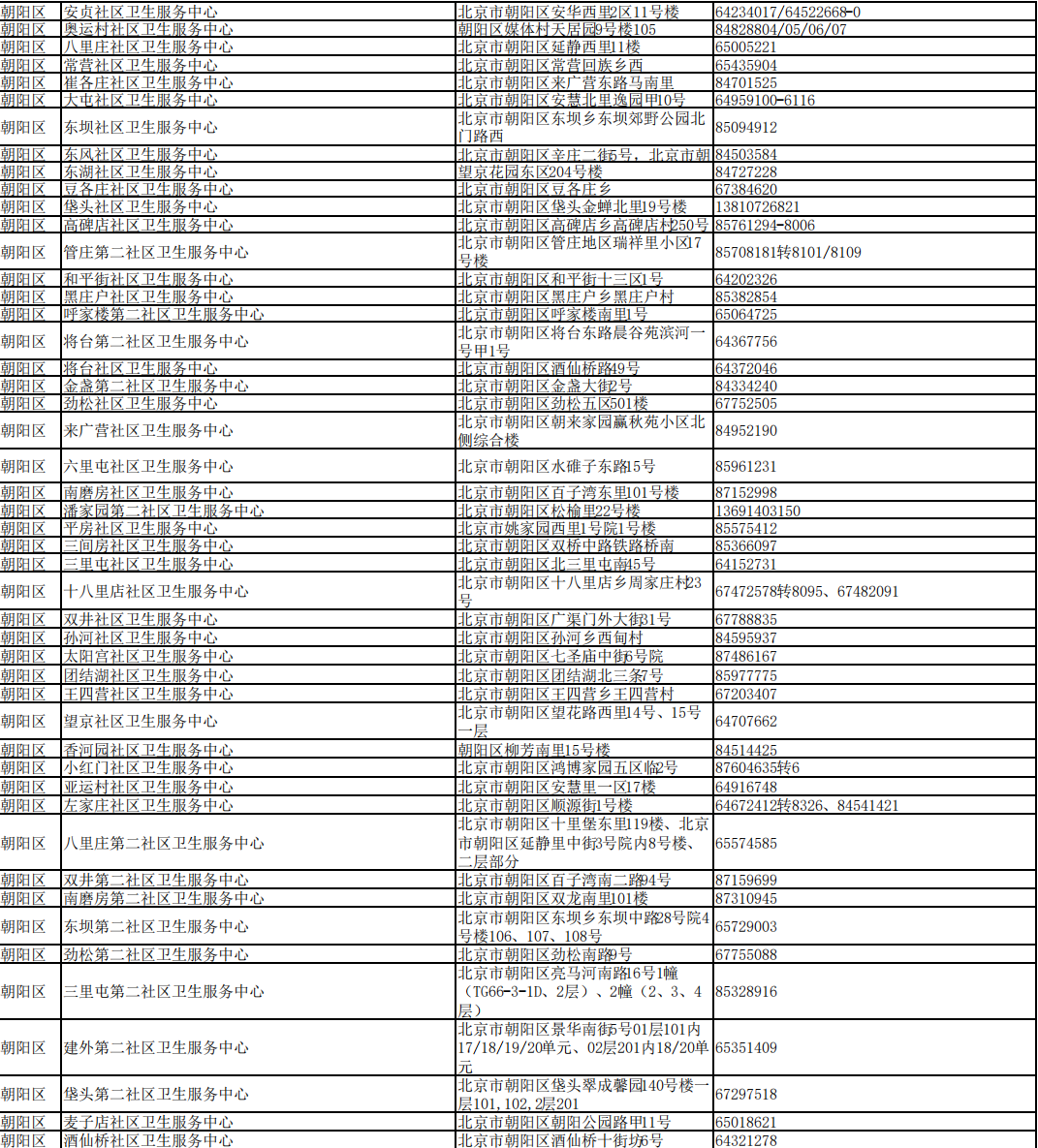 北京市接診發(fā)熱等11類癥狀患者社區(qū)衛(wèi)生服務中心名單