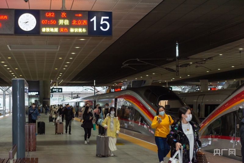 乘客搭乘G82次復(fù)興號(hào)智能型動(dòng)車組出行(央廣網(wǎng)記者 黃璐璐攝)