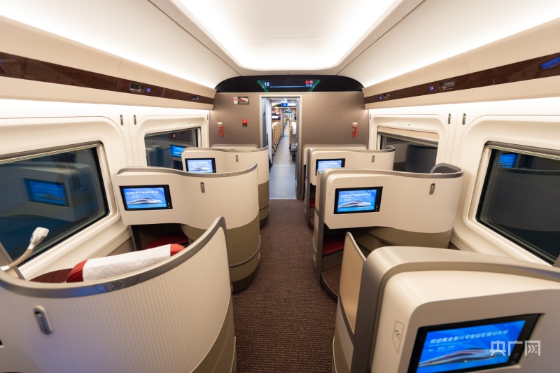 復(fù)興號(hào)智能型動(dòng)車組車廂里“科技感”、“時(shí)尚感”滿滿(央廣網(wǎng)發(fā) 廣鐵集團(tuán)供圖)