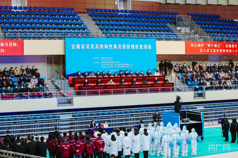 安徽省突發(fā)高致病性禽流感疫情應(yīng)急演練現(xiàn)場(央廣網(wǎng)發(fā) 懷寧縣委宣傳部供圖)