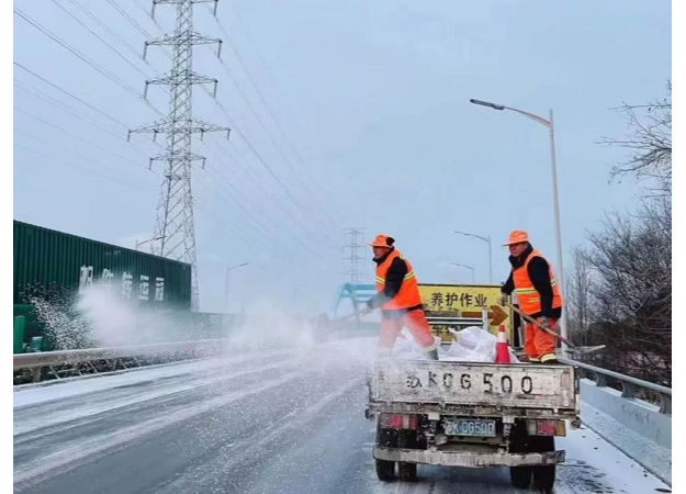 14日下午降雪后,公路部門以雪為令,第一時間啟動除雪保暢應急預案,全市公路系統(tǒng)25支360余人的應急隊伍全部出動,連夜在全市近千公里普通國省干線公路開展除雪融冰作業(yè),在結冰路段、橋梁、彎道等重點路段撒布融雪劑、防滑料,全力以赴確保公路安全暢通。