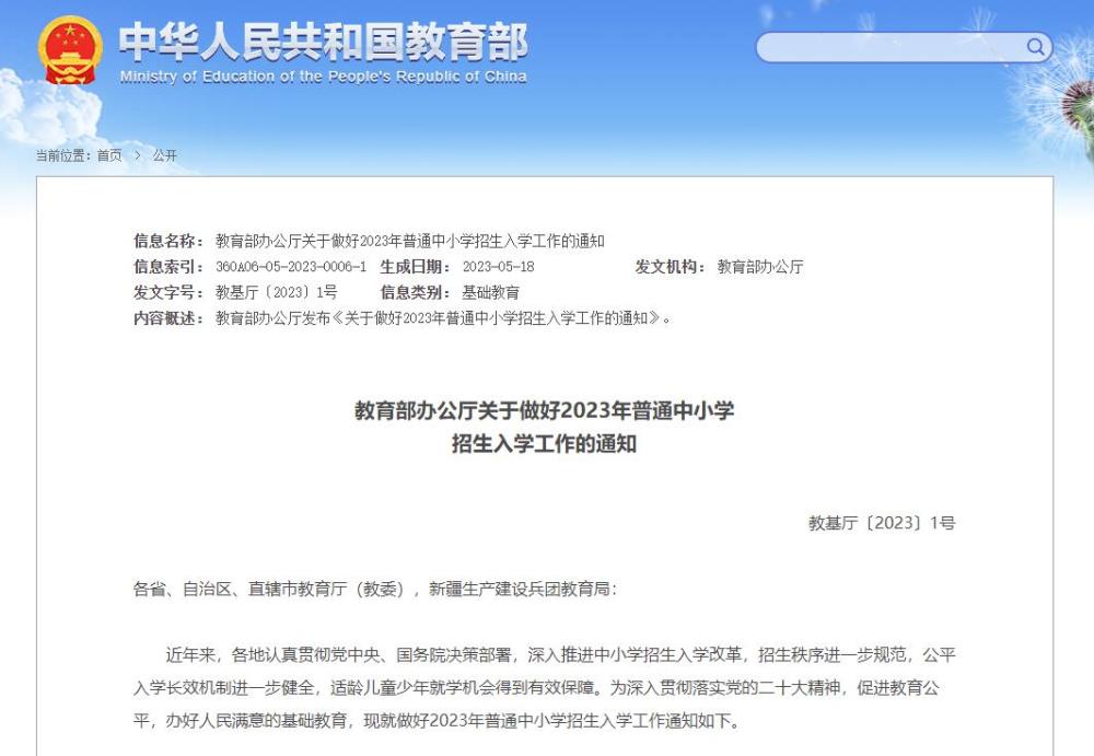 央視網消息:近日,教育部辦公廳發(fā)布《關于做好2023年普通中小學招生入學工作的通知》。主要內容如下: