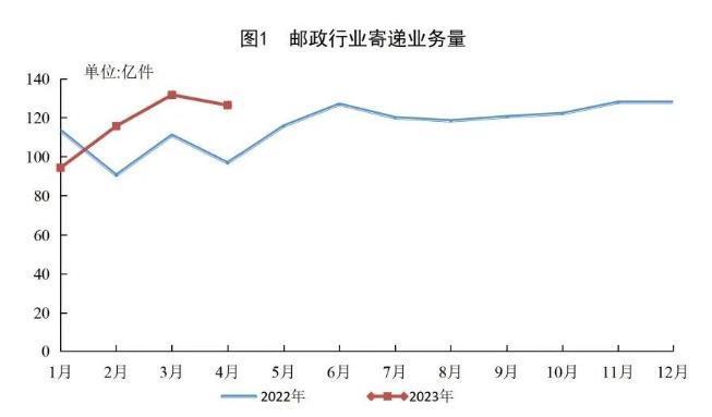 中新網(wǎng)5月22日電 據(jù)國家郵政局微信公眾號22日公布2023年4月郵政行業(yè)運行情況。1-4月,郵政行業(yè)寄遞業(yè)務(wù)量累計完成468.0億件,同比增長13.7%。其中,快遞業(yè)務(wù)量累計完成371.0億件,同比增長17.0%。