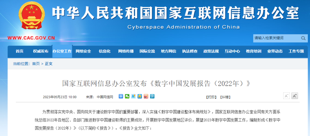 國家互聯(lián)網(wǎng)信息辦公室會同有關(guān)方面系統(tǒng)總結(jié)2022年各地區(qū)、各部門推進數(shù)字中國建設(shè)取得的主要成效,開展數(shù)字中國發(fā)展地區(qū)評價,展望2023年數(shù)字中國發(fā)展工作,編制形成《數(shù)字中國發(fā)展報告(2022年)》。