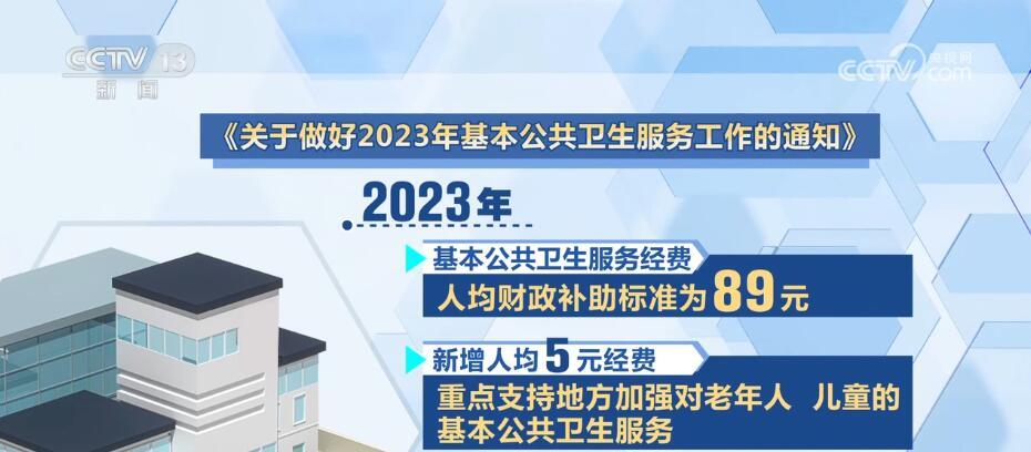 央視網(wǎng)消息:為推進(jìn)健康中國建設(shè),完善人民健康促進(jìn)政策,持續(xù)提升基本公共服務(wù)水平,國家衛(wèi)生健康委日前發(fā)布《關(guān)于做好2023年基本公共衛(wèi)生服務(wù)工作的通知》。通知明確,提高基本公共衛(wèi)生服務(wù)經(jīng)費財政補(bǔ)助標(biāo)準(zhǔn),落實基層醫(yī)療機(jī)構(gòu)基本公共衛(wèi)生補(bǔ)助,做好2023年基本公共衛(wèi)生各項重點工作。