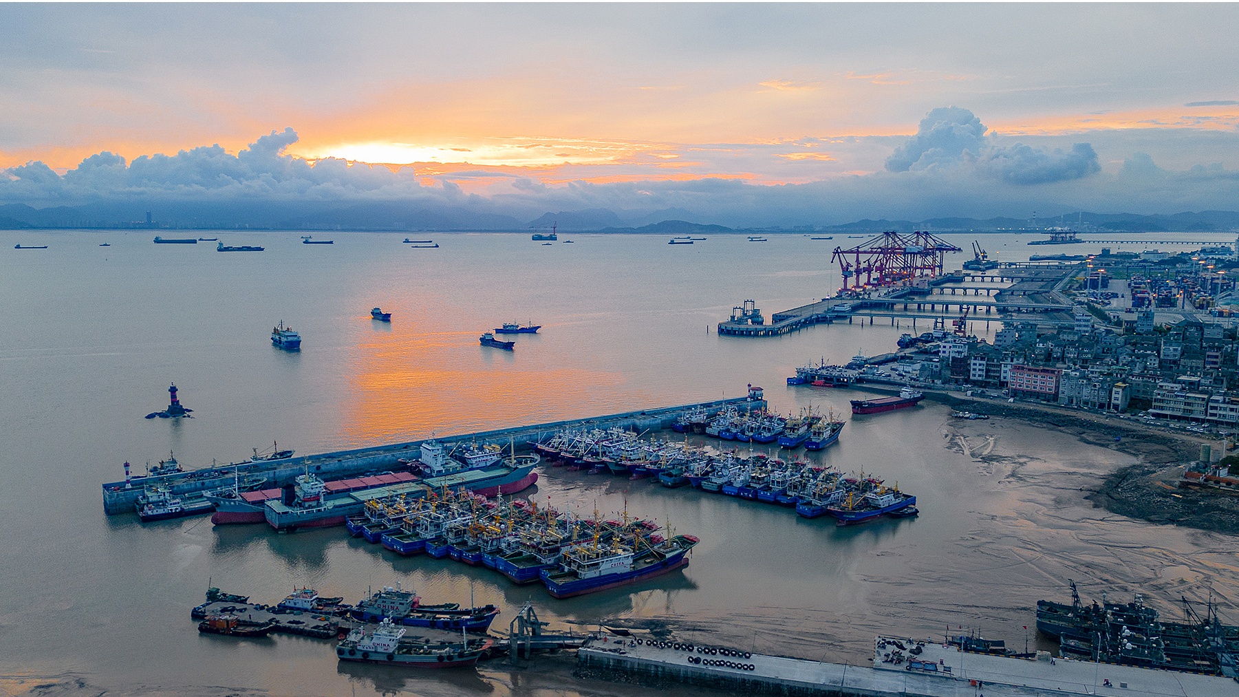 2023年7月24日,浙江臺(tái)州,避風(fēng)漁船??吭谟癍h(huán)市大麥嶼二級(jí)漁港。
