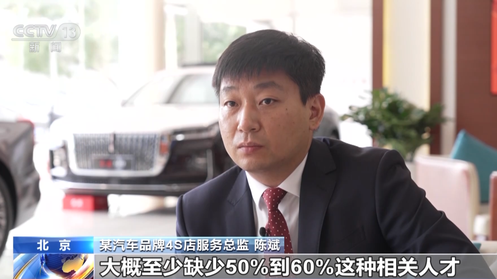 某汽車(chē)品牌4S店服務(wù)總監(jiān) 陳斌:目前的缺口,從我們店端來(lái)講,大概至少缺50%到60%這種相關(guān)人才。