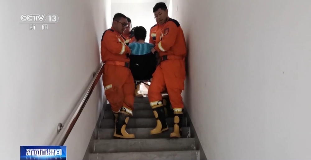 除了緊張的排澇作業(yè),救援隊(duì)注意到,由于斷水?dāng)嚯姅嗑W(wǎng),在這里居住的群眾也會(huì)遇到各種難題。6日上午,一名居民前來求助,21層82歲的老人姚希玉困在家中好幾天,有就醫(yī)需求。但沒有電梯,很難將老人運(yùn)送下來。救援隊(duì)決定,立刻走樓梯把老人運(yùn)下來。