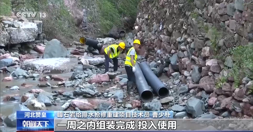 嶂石巖給排水搶修重建項目技術(shù)員 曹少樸:我們現(xiàn)在投入大量的工人,還有管理人員,現(xiàn)在是三班倒,在緊急搶修中,一周之內(nèi)組裝完成,投入使用。