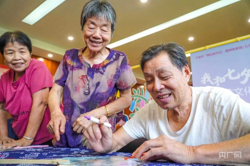 現(xiàn)場,老人們在海曙區(qū)橫街鎮(zhèn)成人文化技術(shù)學(xué)校教師的介紹下,了解七夕節(jié)的來歷和意義,并體驗(yàn)“穿針乞巧”、團(tuán)扇制作。此外,轄區(qū)青少年也一起來參加活動(dòng),在豐富暑期生活的同時(shí),與爺爺奶奶們共同感悟傳統(tǒng)文化的魅力。