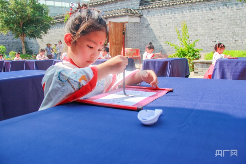 央廣網(wǎng)寧波8月22日消息(記者 張雯雯 通訊員 方舟 安雨晨)樹影婆娑,古韻悠揚,鼓聲清越,翰墨飄香。8月22日,在新學(xué)年來臨之際,寧波市江北區(qū)莊橋街道馬徑村文化禮堂舉行了一場別開生面的“開筆啟智慧 閱讀潤人生”開筆禮。活動在茂昌房舉行,20多名即將上小學(xué)的小朋友身著漢服,在開筆儀式中感受中國傳統(tǒng)文化的魅力。