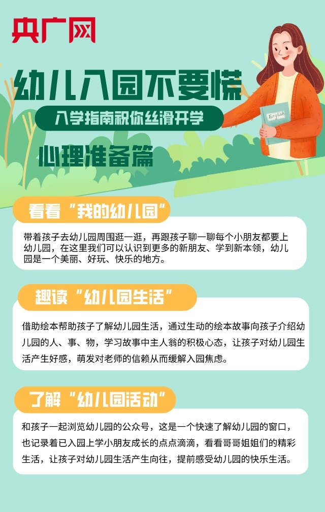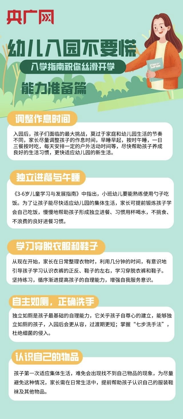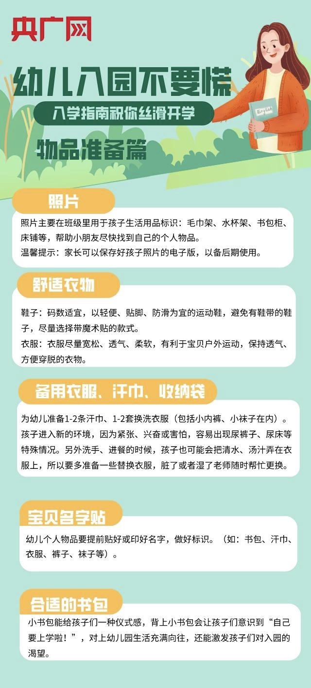 央廣網(wǎng)北京8月27日消息 幼兒園是人生的第一所學(xué)校,在這里,孩子們將開(kāi)啟真正的學(xué)習(xí)生活和社會(huì)生活。可以說(shuō),這一階段對(duì)于孩子的性格塑造和習(xí)慣養(yǎng)成都有著十分重要的影響。那么幼兒入園前,新手爸媽?xiě)?yīng)該做好哪些準(zhǔn)備工作呢?別慌,這份入學(xué)指南請(qǐng)收藏!