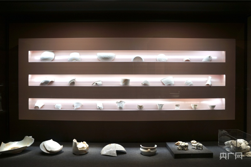 展出的德化白瓷碎片(央廣網(wǎng)見(jiàn)習(xí)記者 李?yuàn)檴?攝)