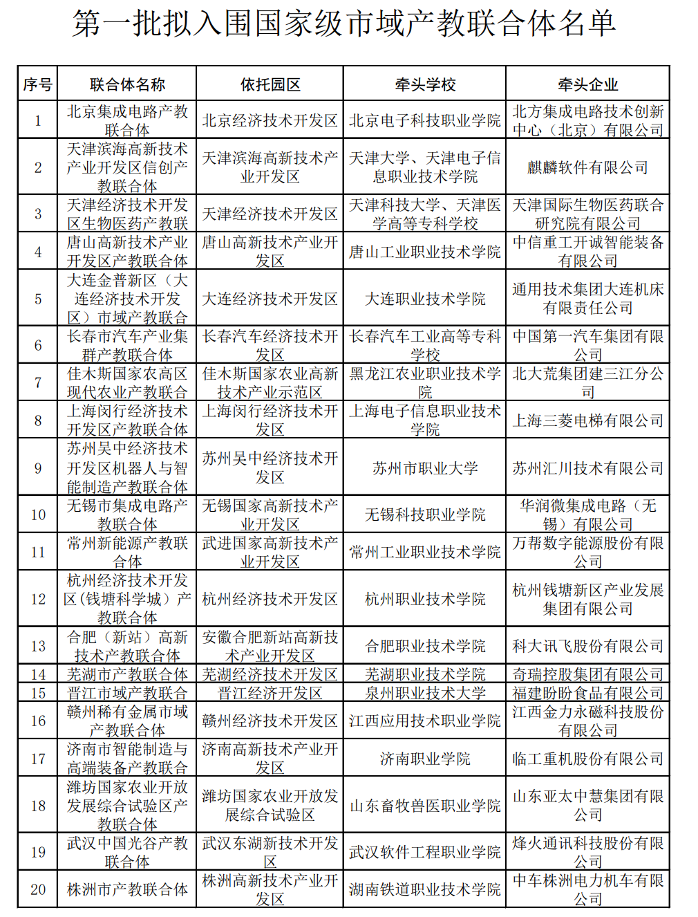 第一批擬入圍國家級(jí)市域產(chǎn)教聯(lián)合體名單(教育部官方網(wǎng)站截圖,央廣網(wǎng)發(fā))