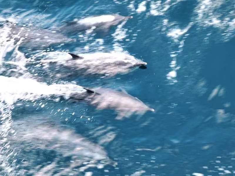 節(jié)日伴航 海警局巡邏途中遇見大批海豚