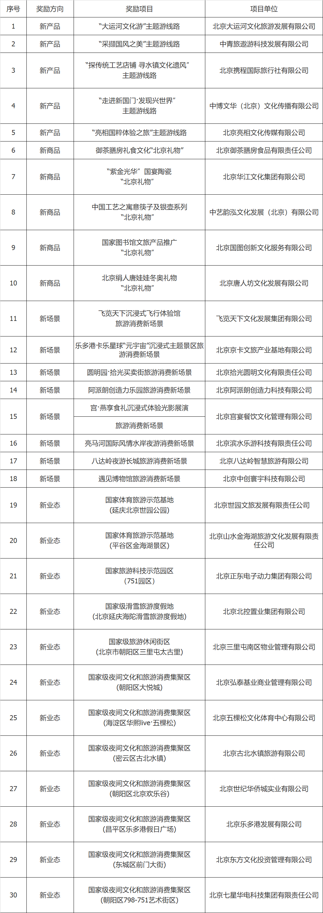 央廣網北京11月7日消息(記者 秦立玲)據北京市文化和旅游局消息,按照《北京市擴大文化和旅游新消費獎勵辦法》(京文旅發(fā)〔2022〕99號)有關要求,經征集、專家評審及社會公示等程序,北京市文化和旅游局已確定“大運河文化游”主題游線路等30個新產品、新商品、新場景、新業(yè)態(tài)入選2022年北京市擴大文化和旅游新消費獎勵項目名單。