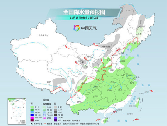 具體來看,今天,新疆北部等地部分地區(qū)有小雪或雨夾雪,局地有中到大雪。西南地區(qū)南部、江南南部、華南大部等地部分地區(qū)有小到中雨,局地有大雨。