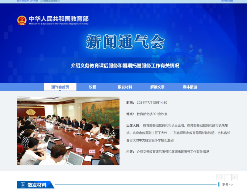 教育部此前舉辦的介紹義務(wù)教育課后服務(wù)和暑期托管服務(wù)工作有關(guān)情況通氣會(央廣網(wǎng)發(fā) 圖片來自教育部網(wǎng)站)