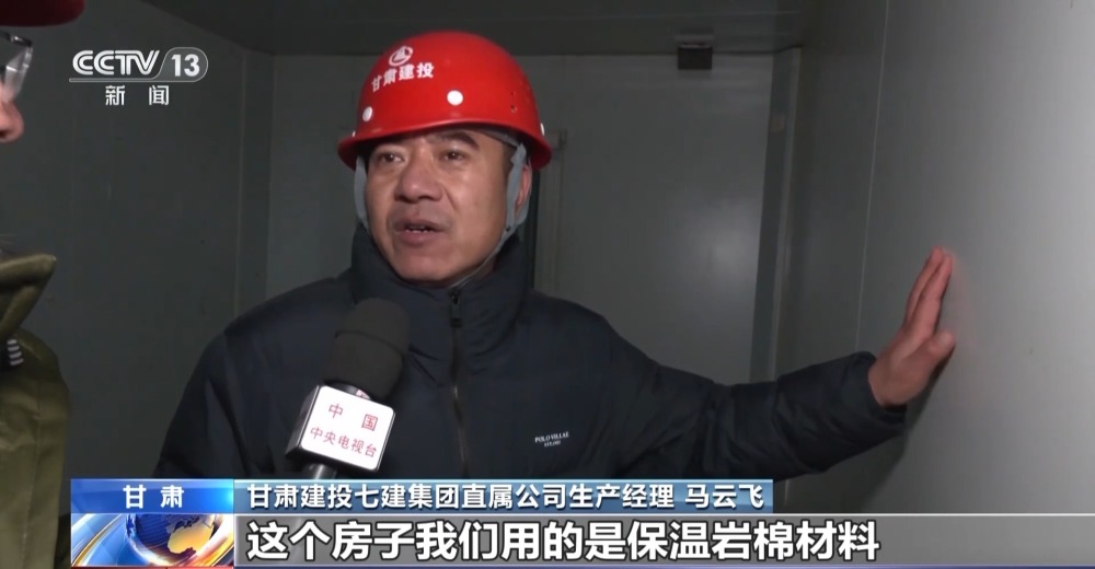 甘肅建投七建集團(tuán)直屬公司生產(chǎn)經(jīng)理 馬云飛:這個(gè)房子的面積是18個(gè)平方,3米乘6米,能住4到6個(gè)人。 房子我們用的是保溫巖棉材料,屬于A級防火等級的材料。 取暖問題考慮用電暖氣。 我們下一步考慮也要把水引進(jìn)來,包括電。老百姓只要進(jìn)來打掃打掃房間,完全可以達(dá)到入住條件。