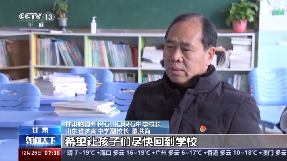 甘肅臨夏州積石山縣積石中學(xué)校長、山東省濟(jì)南中學(xué)副校長 董洪海:地震當(dāng)天的凌晨,就已經(jīng)有臨夏市的百姓到學(xué)校里邊送食物,有大量的救援的車輛、人員進(jìn)入,也感到了整個社會支撐的力量。我不是一個人在戰(zhàn)斗,是一個很大的團(tuán)隊(duì)。