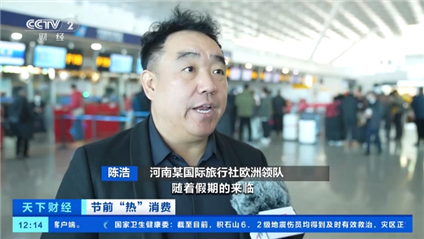 河南某國(guó)際旅行社歐洲領(lǐng)隊(duì) 陳浩:隨著假期的來(lái)臨以及國(guó)際航班的增多,我們的業(yè)務(wù)量也在逐漸增加。