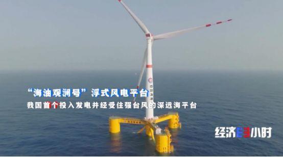 距離海南文昌海岸線136公里的海洋深處,“海油觀瀾號”浮式風(fēng)電平臺迎風(fēng)挺立。這是我國第一個投入發(fā)電并經(jīng)受住強臺風(fēng)的深遠海風(fēng)電平臺,于今年5月份并網(wǎng)發(fā)電。