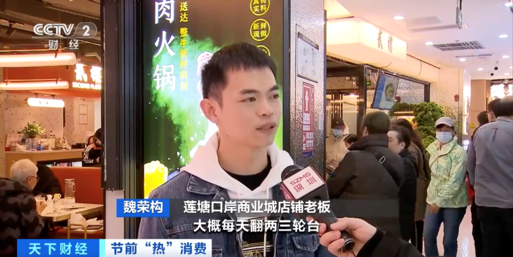 蓮塘口岸商業(yè)城店鋪老板 魏榮構(gòu):我們店里大概有20多張桌,每天翻兩三輪臺,單日營業(yè)額大概三四萬元。