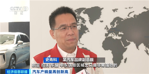 某汽車品牌副總裁 史青科:2023年出口同比增長了82.48%,20萬元以上車型的銷售占比逐漸加大,歐亞、拉美、東盟、中東這些區(qū)域出口非常強勁。