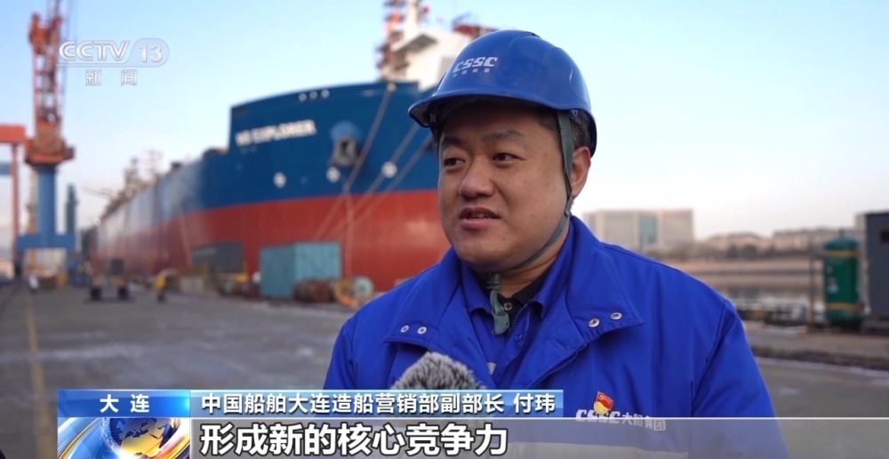 中國船舶大連造船營銷部副部長 付瑋:現(xiàn)在我們新的非傳統(tǒng)燃料船舶訂單承接比例快速增長,形成新的核心競爭力,成為新的經(jīng)濟增長點。