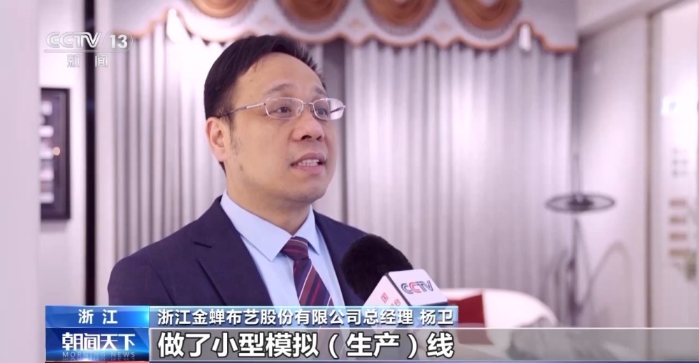 浙江金蟬布藝股份有限公司總經(jīng)理 楊衛(wèi):剛開始,父輩們會覺得投資好大,它效果怎么樣?然后我列了各種數(shù)據(jù)做了小型模擬生產(chǎn)線,把這些結(jié)果給父親看,最后父親覺得確實(shí)應(yīng)該走智能化的道路,然后我們就更大規(guī)模投建整個(gè)的智能工廠。