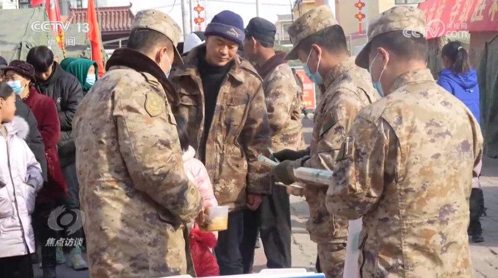 甘肅省臨夏州積石山縣石塬鎮(zhèn)振興社區(qū)黨支部書記張國英:“凌晨的時(shí)候最難熬,特別冷,累了就隨便在車上裝車的時(shí)候瞇一會(huì)兒,一句怨言也沒有。他們倆一個(gè)是黨員,一個(gè)是軍人,在大災(zāi)大難面前,沖鋒陷陣第一個(gè)先上?!?/p>
