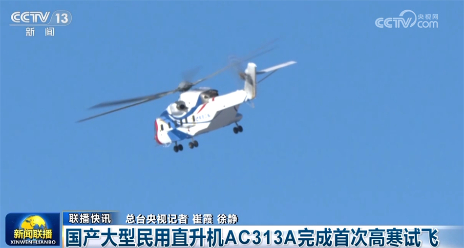 國產(chǎn)大型民用直升機(jī)AC313A完成首次高寒試飛