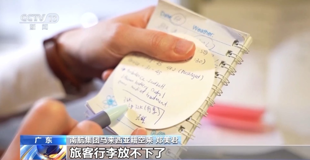 南航集團(tuán)馬來西亞籍空乘 黃佩儀:現(xiàn)在又到了春運的時期,我們領(lǐng)資料箱的時候,特地問一下能不能多給我們兩包,盡量保證每個睡覺的旅客,前面都有這樣一個小紙貼。