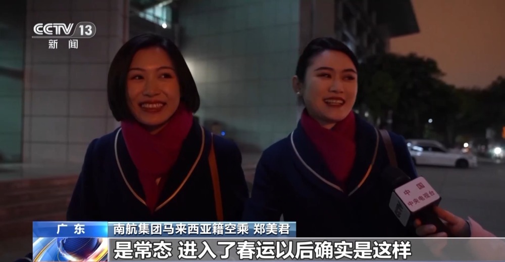 南航集團(tuán)馬來西亞籍空乘 鄭美君:是常態(tài),進(jìn)入了春運以后確實是這樣,在旅客不知道的角度我們做了很多準(zhǔn)備。旅客上來的時候,其實我們已經(jīng)滿頭大汗的那種了。