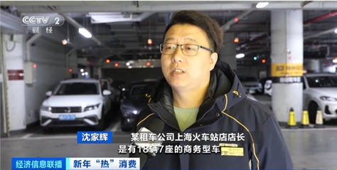 某租車公司上海火車站店店長 沈家輝:門店有18輛7座的商務型車。春節(jié)的價格比去年增長10%左右。雖然說價格增長了,但是預訂率還是比較高的。