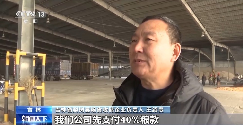 吉林省梨樹縣糧食收儲(chǔ)企業(yè)負(fù)責(zé)人 王紹貴:合作社或者是種糧大戶可以先把糧送到我們公司,我們公司先支付40%糧款,剩余部分賣糧戶可以在合適的價(jià)格,確定價(jià)格之后再一起結(jié)算。