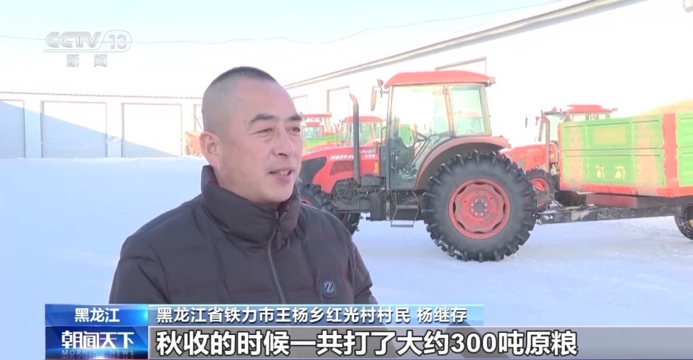 黑龍江省鐵力市王楊鄉(xiāng)紅光村村民 楊繼存:秋收的時(shí)候一共打了大約300噸原糧,這兩天價(jià)格好,趕緊到合作社把糧食賣了,賣個(gè)好價(jià)過(guò)個(gè)好年。