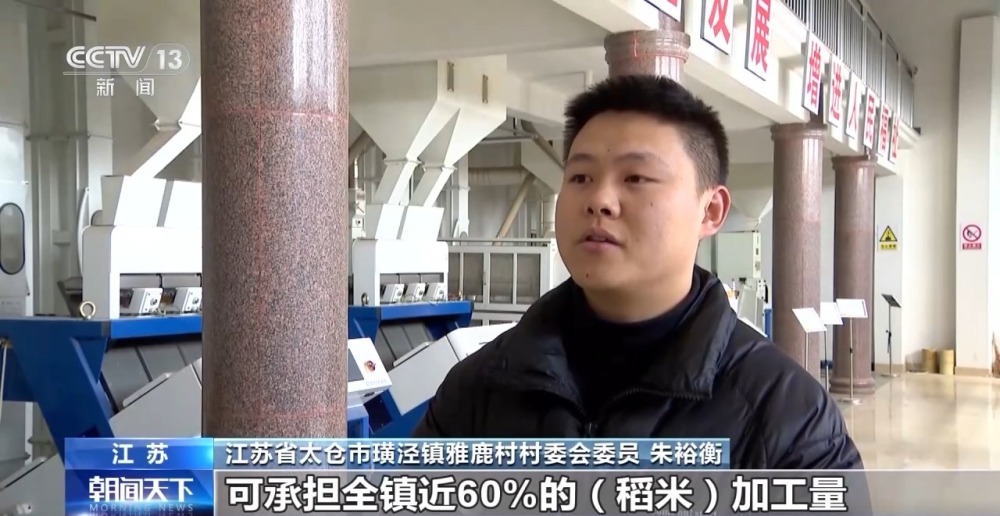 江蘇省太倉(cāng)市璜涇鎮(zhèn)雅鹿村村委委員 朱裕衡:這個(gè)加工廠是由我們和隔壁的楊漕村、孟河村三個(gè)村一起投資建設(shè)的,可承擔(dān)全鎮(zhèn)近60%的(稻米)加工量,其他村都可以到這邊來(lái)加工,服務(wù)都是一樣的。
