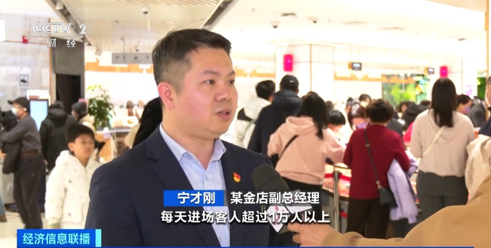 某金店副總經理 寧才剛:每天進場的客人非常多,我們總店每天進場的客人超過1萬人。從單個品類來看,轉運等非常受歡迎,每天的銷售量都是幾千件以上。