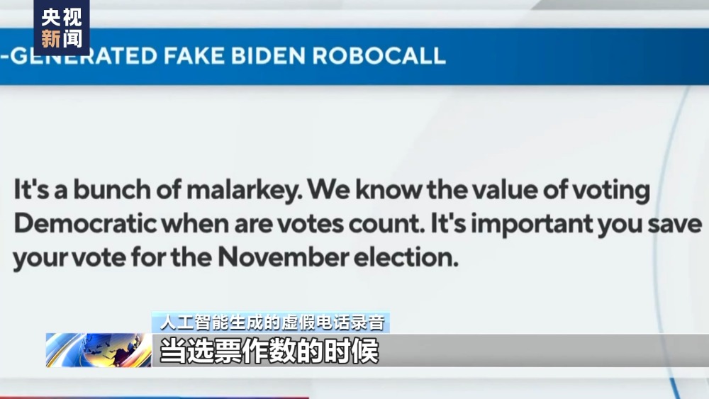 人工智能生成的虛假電話錄音:真是一派胡言,當選票作數(shù)的時候,我們就能知道民主投票的價值了。你要把選票留到11月再投。