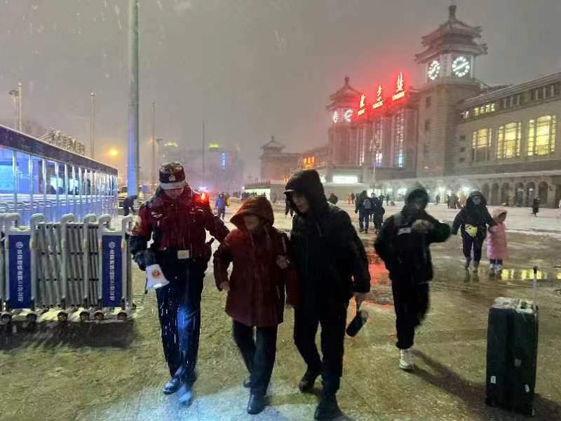 北京豐臺站地區(qū)就采取多種措施應(yīng)對極端低溫天氣,服務(wù)好春運返程夜間集中大客流。增加與鐵路會商頻度,落實每半小時溝通聯(lián)絡(luò)一次,及時準(zhǔn)確掌握列車晚點停運情況,根據(jù)客流情況調(diào)整夜班公交和公交高鐵專線的保障,協(xié)調(diào)網(wǎng)約車企業(yè),保障運力。按照“隨下隨掃”原則進(jìn)行掃雪鏟冰作業(yè),緊盯東南出站口、連廊周邊、匝道、地鐵口附近、停車場等重點區(qū)域,做好清掃、采取防滑措施并做好防滑提示。在南廣場和地下出租車調(diào)度站,為有需要的旅客和司機(jī)提供紅糖姜水。