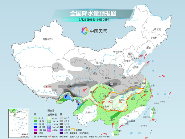 今天(2月23日),我國中東部等地大范圍雨雪持續(xù),降水強(qiáng)度繼續(xù)減弱,不過陜西南部、湖北東部和南部等地部分地區(qū)仍有大雪,局地暴雪,湖南、貴州等地有凍雨。明后天,北方大部降雪停歇,南方仍有雨雪天氣。預(yù)計南方多陰雨的天氣格局將延續(xù)至月底,大部地區(qū)氣溫也持續(xù)低迷,公眾春運出行需注意防范。